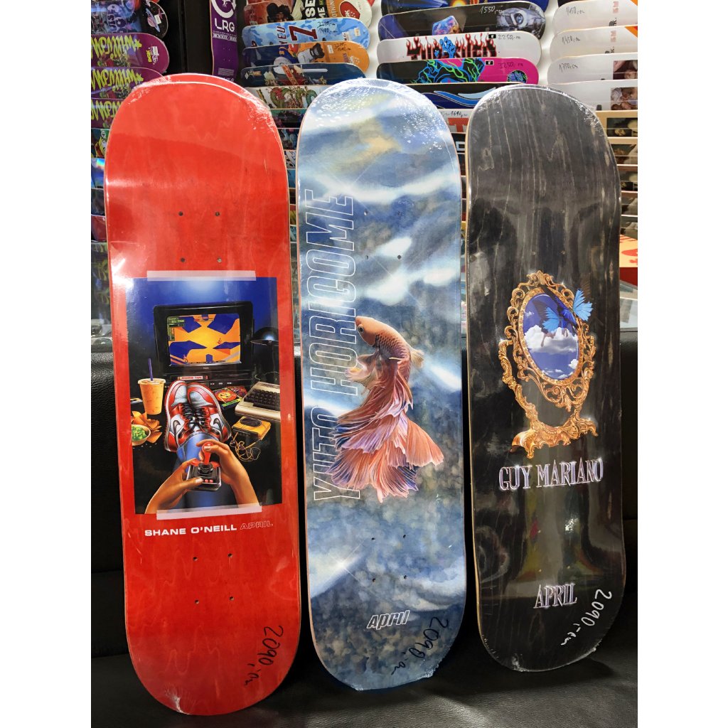 April Skateboards založil v roce 2019 legendární australský skater Shane O'Neill. Značka, sídlící v Kalifornii, odráží O'Neillovu vizi čistého, minimalistického designu v kombinaci s elitním výkonem a stala se celosvětově uznávanou pro své vysoce kvalitní desky a silný tým jezdců. Yuto Horigome, Rayssa Leal nebo Guy Mariano.